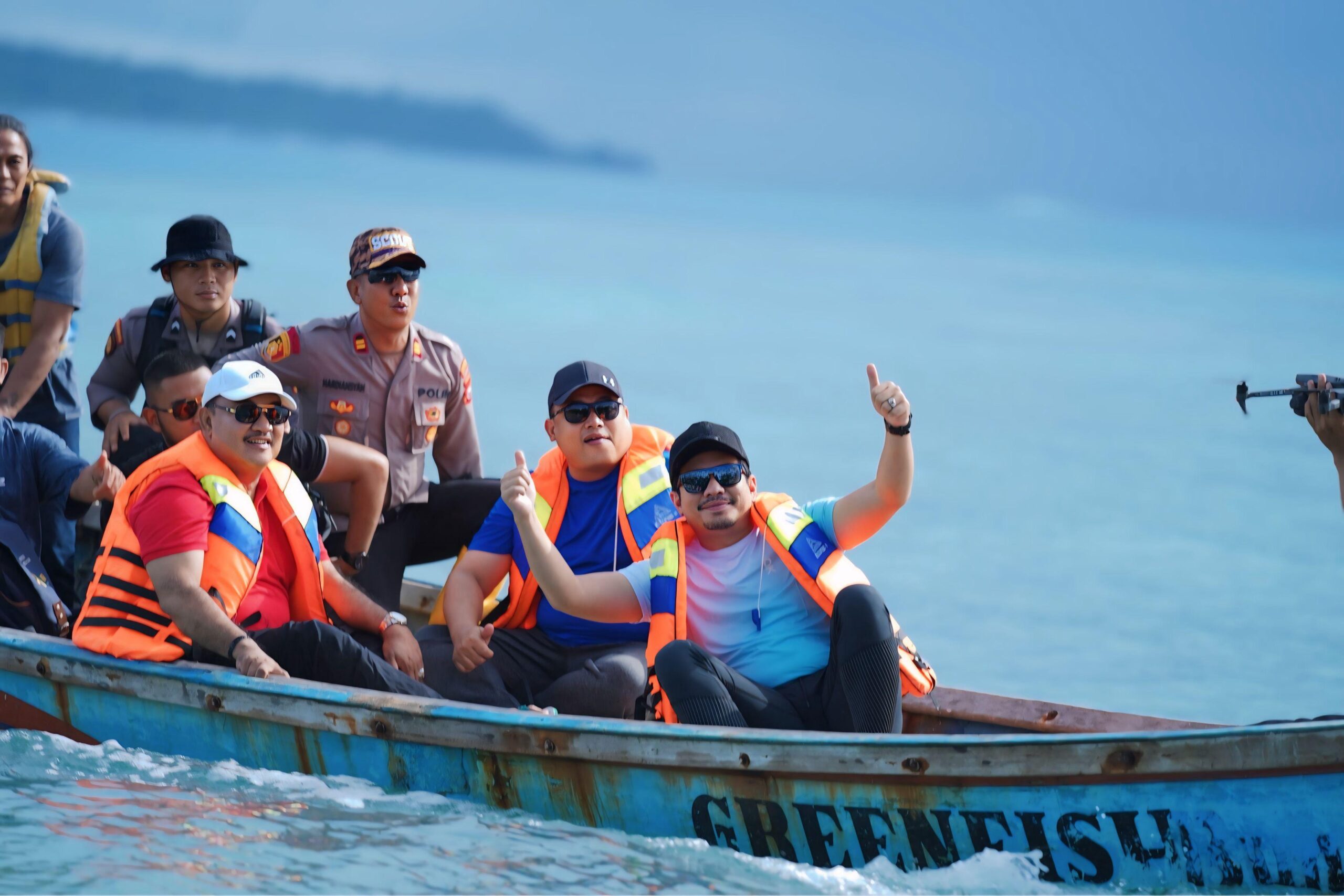 Setelah menempuh perjalanan laut sekitar 15 menit menggunakan kapal nelayan dari Desa Kahyapu, rombongan tiba di Pulau Dua. Bupati Arie menyatakan kekagumannya terhadap potensi wisata pulau tersebut.