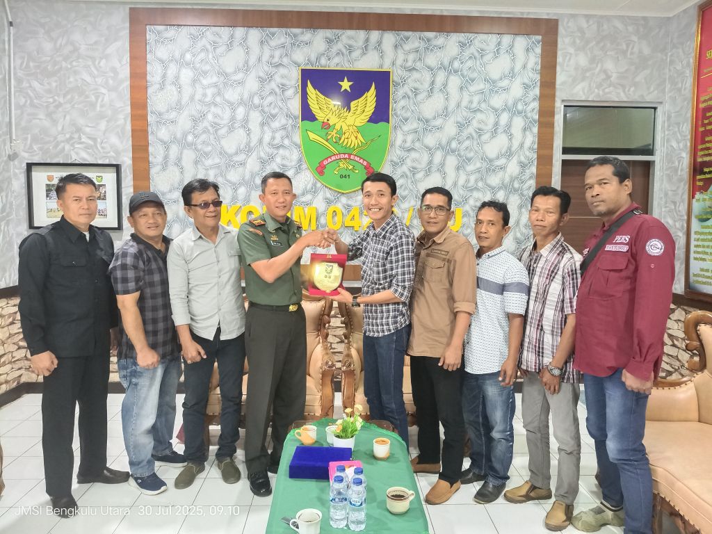 Bengkulu Utara – Jaringan Media Siber Indonesia (JMSI) Bengkulu Utara melakukan kunjungan silaturahmi ke Markas Komando Distrik Militer (Kodim) 0423/Bengkulu Utara, Rabu (30/7/2025). Kunjungan ini disambut langsung oleh Komandan Kodim 0423/BU, Letkol Kav Aidil Hajri, M.Han.