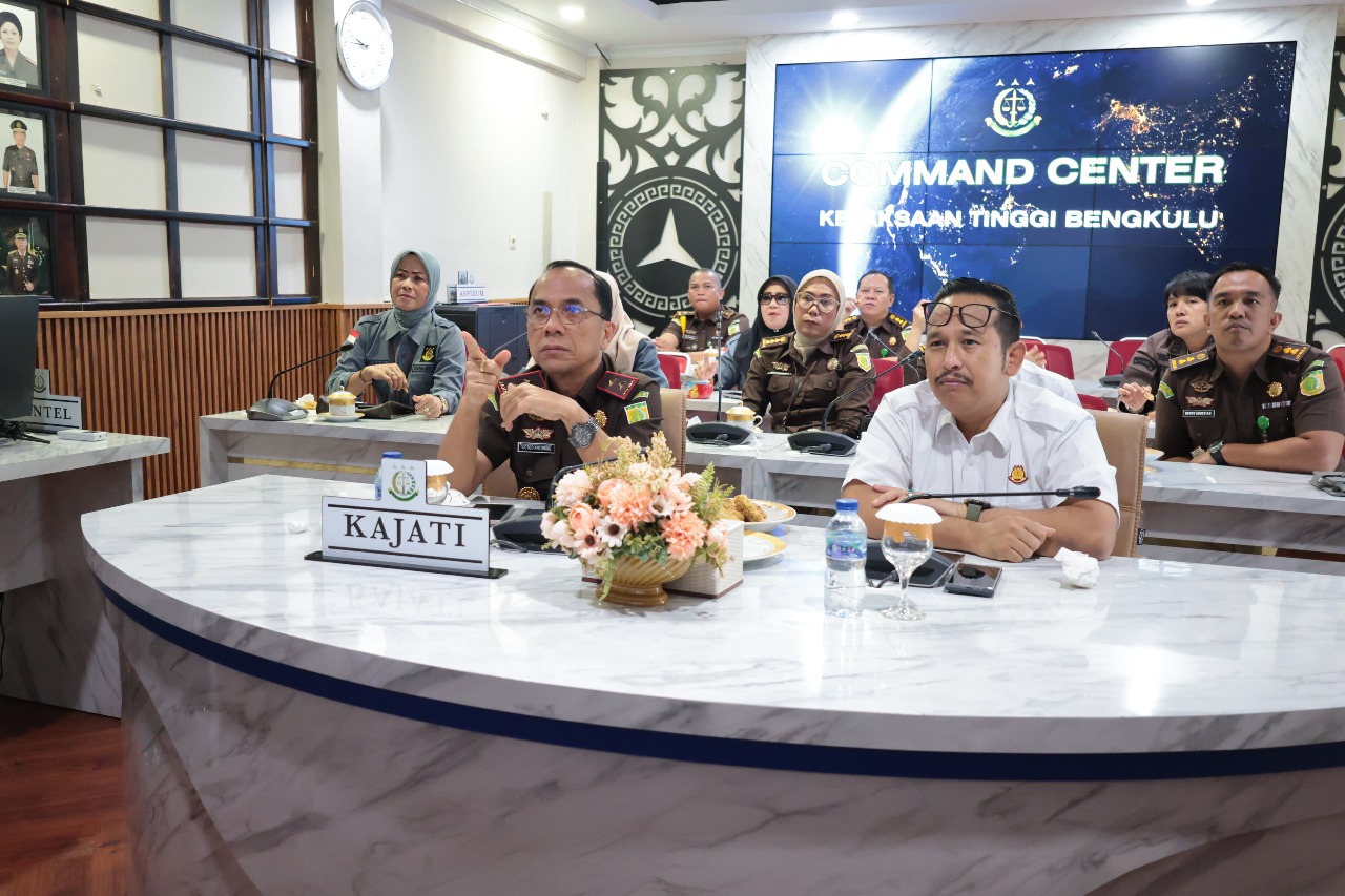 BENGKULU — Kejaksaan Tinggi (Kejati) Bengkulu mengikuti kegiatan Zoom Meeting Patroli Siber yang digelar serentak oleh Kejaksaan Republik Indonesia, Kamis (13/11/25). Kegiatan dilaksanakan di ruang video conference Kejati Bengkulu dan dihadiri Kepala Kejati Bengkulu, Victor Antonius Saragih Sidabutar, S.H., M.H., para asisten, koordinator, serta pejabat di Bidang Intelijen.