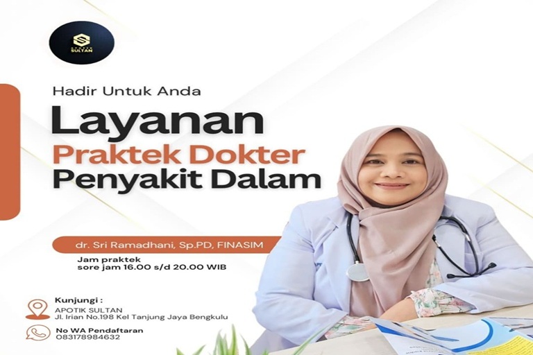 “Kami berkomitmen memberikan pelayanan terbaik bagi masyarakat Bengkulu. Kehadiran dr. Sri di sini sangat membantu pasien yang membutuhkan konsultasi penyakit dalam dengan pelayanan yang humanis,” ujar pengelola Apotek Sultan.