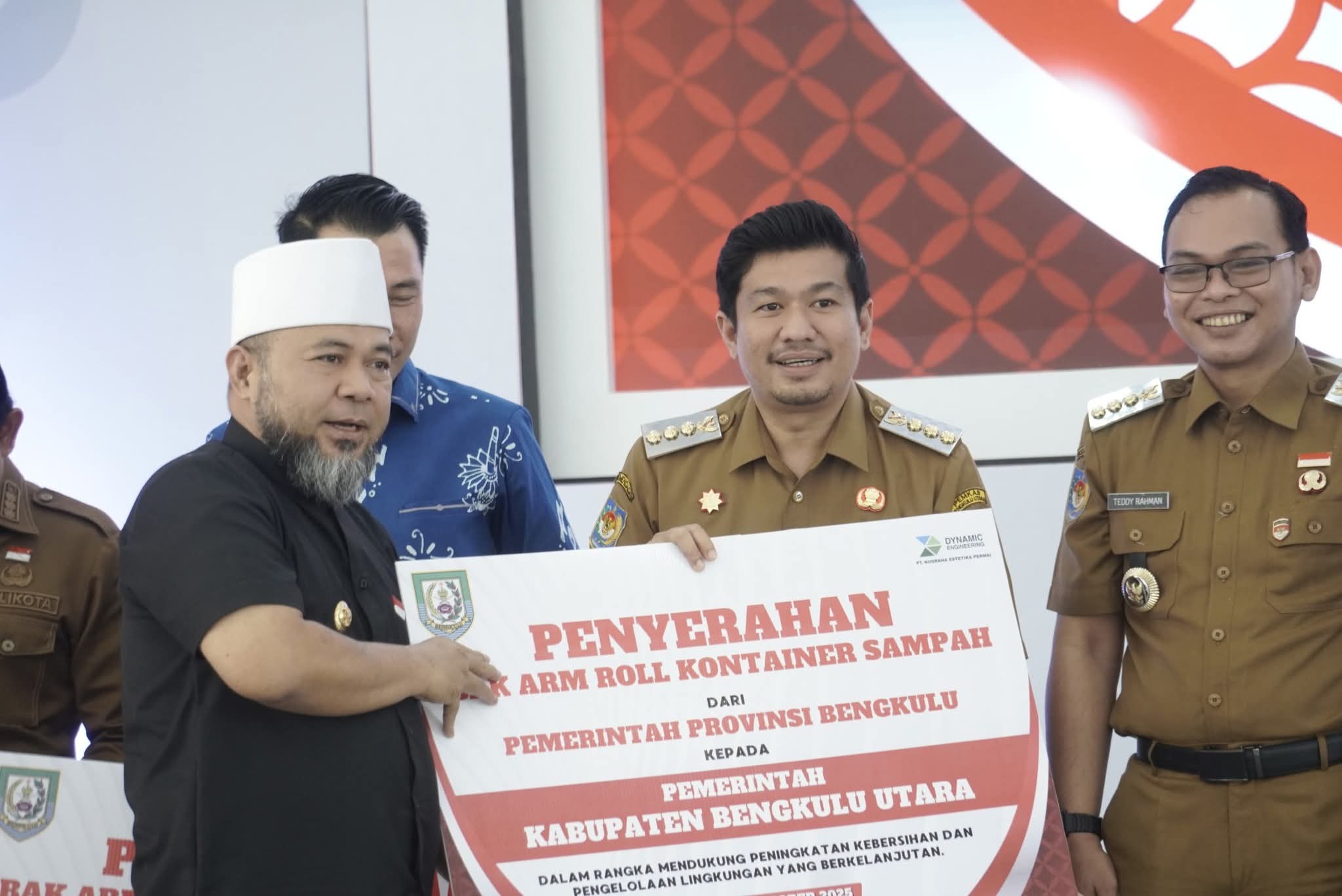 BENGKULU – Pemerintah Kabupaten Bengkulu Utara menerima bantuan delapan unit bak arm roll kontainer sampah dari Pemerintah Provinsi Bengkulu. Serah terima bantuan dilakukan langsung oleh Gubernur Bengkulu, Helmi Hasan, kepada Bupati Bengkulu Utara, Arie Septia Adinata, di Aula Gedung Merah Putih Bengkulu, Senin (27/10/2025).
