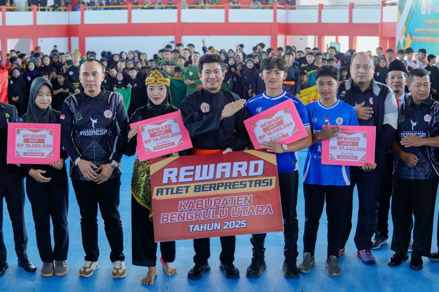 Bengkulu Utara – Pemerintah Kabupaten Bengkulu Utara memberikan apresiasi kepada atlet berprestasi melalui pemberian reward pada pembukaan Kejuaraan Pencak Silat Adhyaksa Cup. Kegiatan tersebut dibuka secara simbolis oleh Bupati Bengkulu Utara, Kamis (18/12/2025), di Gedung Serba Guna Sahri Romli, Kecamatan Arga Makmur.