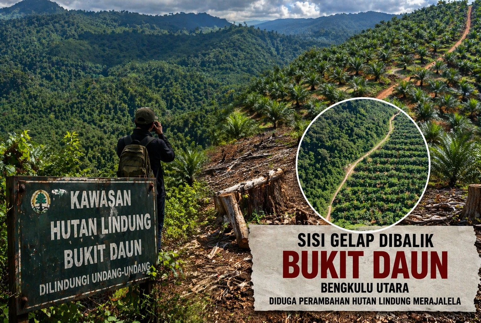 BENGKULU,Jejakkota.com– Dari kejauhan, hamparan hijau Bukit Daun masih tampak menenangkan. Rimbun pepohonan yang membentang di sepanjang gugusan Bukit Barisan itu selama ini dikenal sebagai benteng terakhir hutan lindung di Provinsi Bengkulu. Di sanalah sumber air bermula, mengalir ke sungai-sungai yang menopang kehidupan ribuan warga di hilir.
