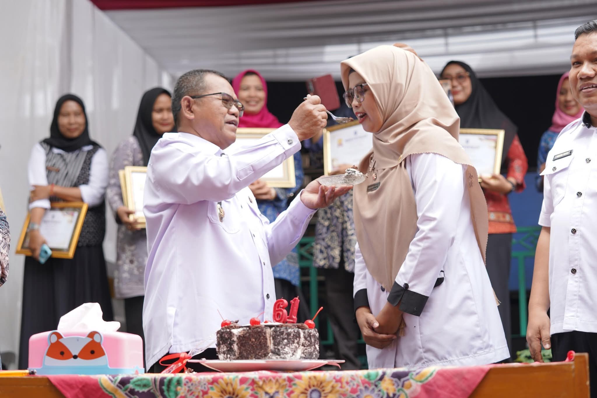 Puncak acara ditandai dengan pemotongan kue HKN ke-61 oleh Wakil Bupati Sumarno bersama Kepala Dinas Kesehatan, yang disambut meriah oleh para peserta dan tamu undangan.