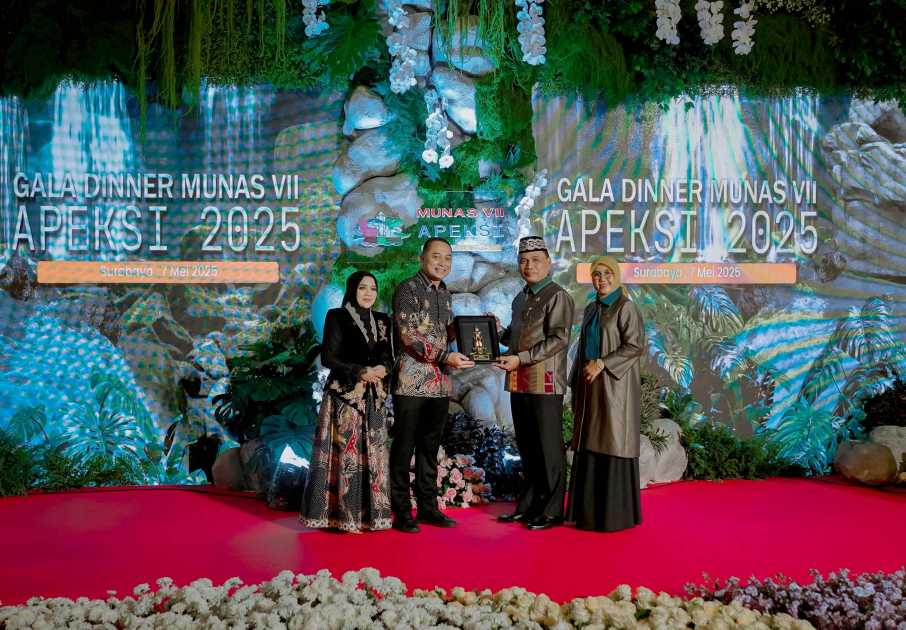 Surabaya – Wali Kota Surabaya Eri Cahyadi menyambut seluruh wali kota se-Indonesia dalam acara Gala Dinner Rapat Kerja Nasional Asosiasi Pemerintah Kota Seluruh Indonesia (APEKSI) Ke-VII Tahun 2025. Kegiatan yang digelar di Taman Surya, Balai Kota Surabaya, Rabu (7/5/2025) malam ini dihadiri Wakil Menteri Dalam Negeri (Wamendagri) Bima Arya serta diramaikan penampilan artis Krisdayanti.